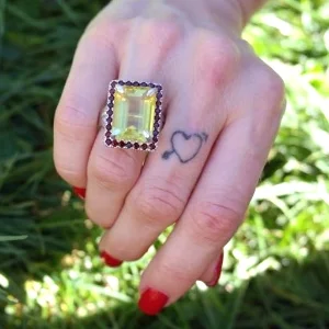 Verde Citrine and Garnet Cocktail Ring