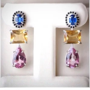 Citrine, Kyanite, and Pink Topaz Earrings
