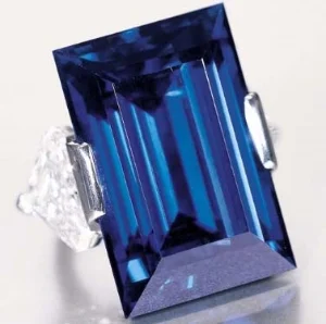 The Rockefeller Sapphire. Rectangular cut sapphire weights approximately 62.2cts. This famous blue baby was originally purchased by John D. Rockefeller in 1934. The Rockefeller Sapphire has been bought as sold at auction a handful of times, most recently going for over $3million to a private collector.